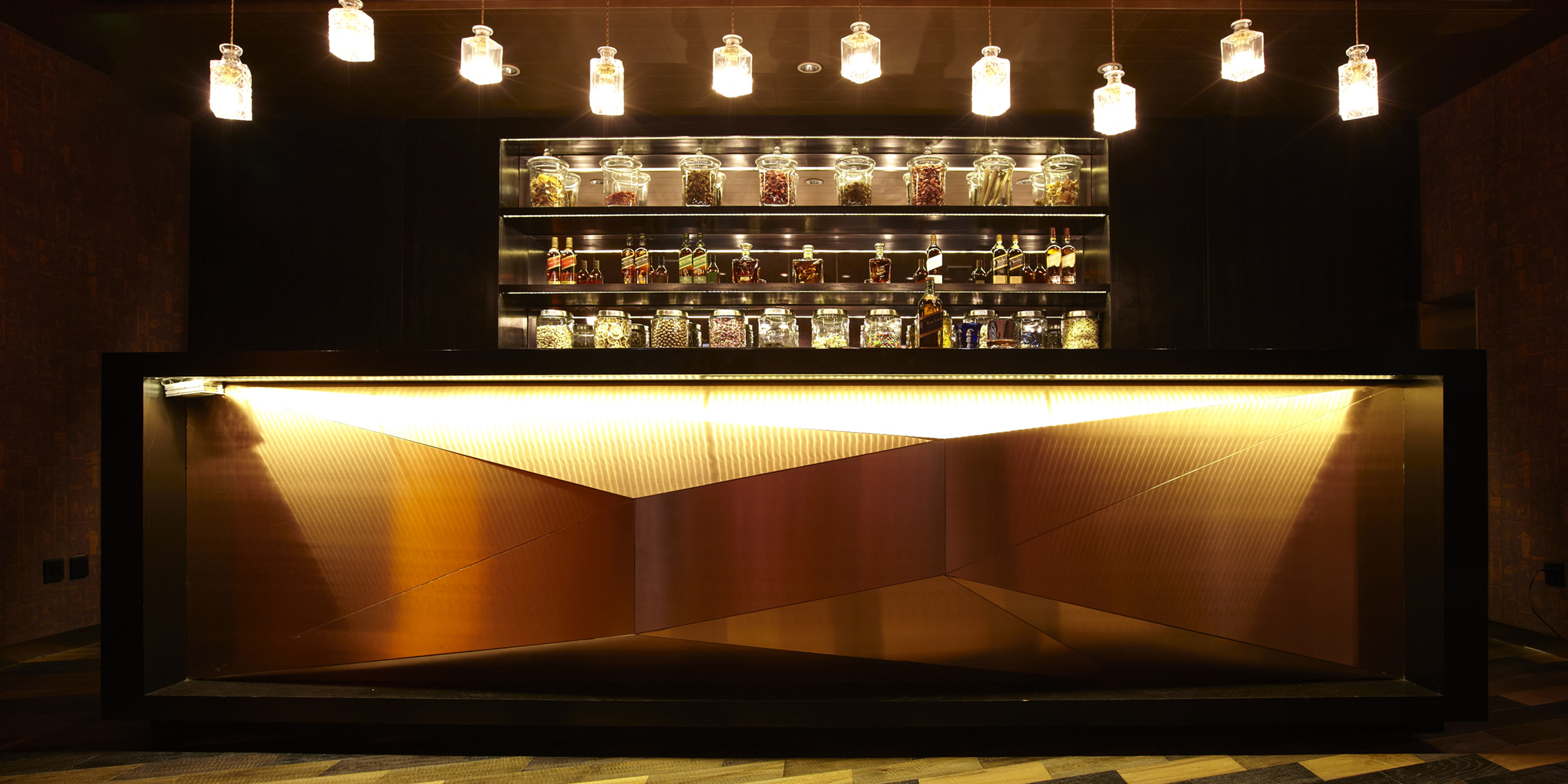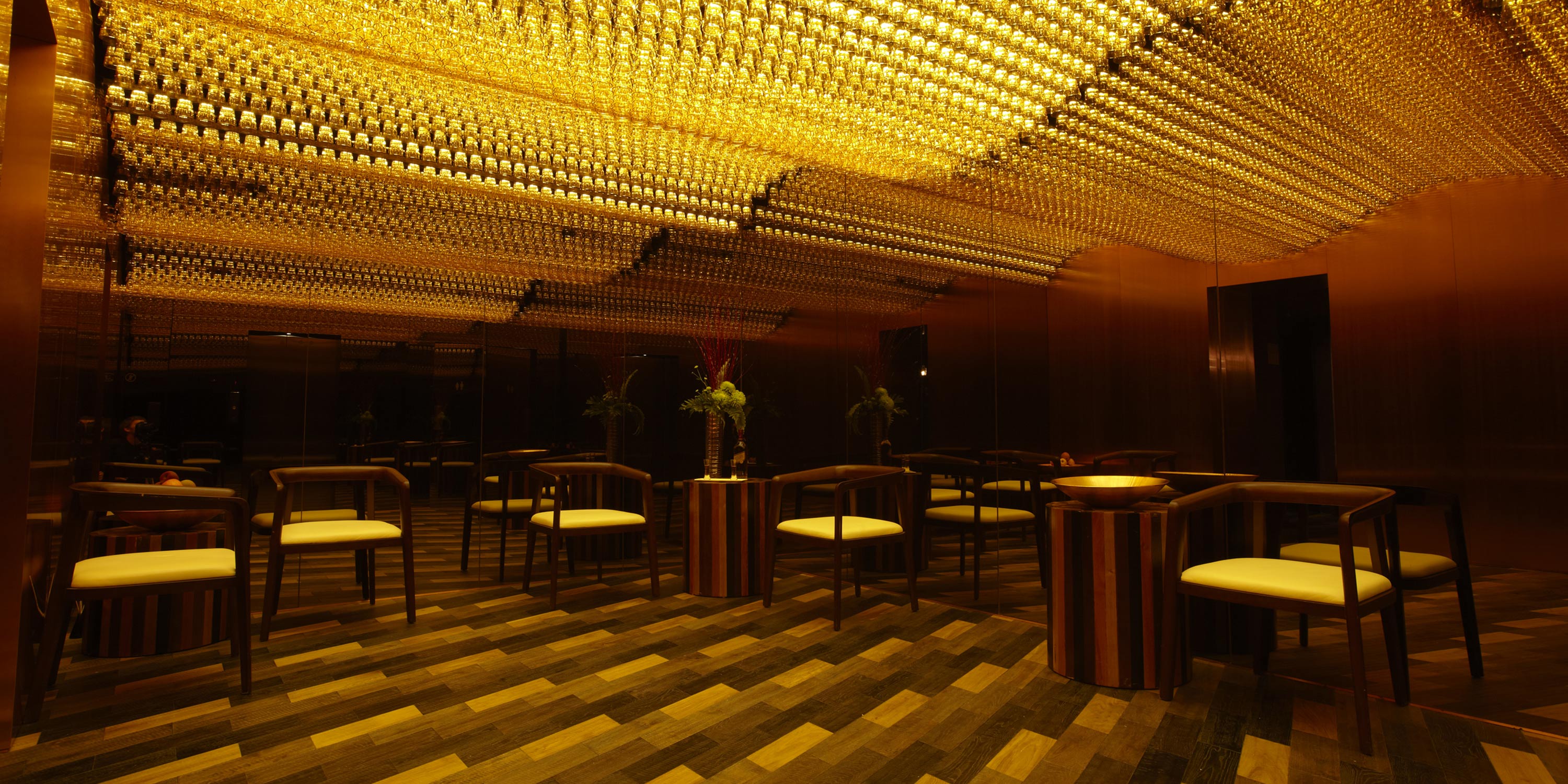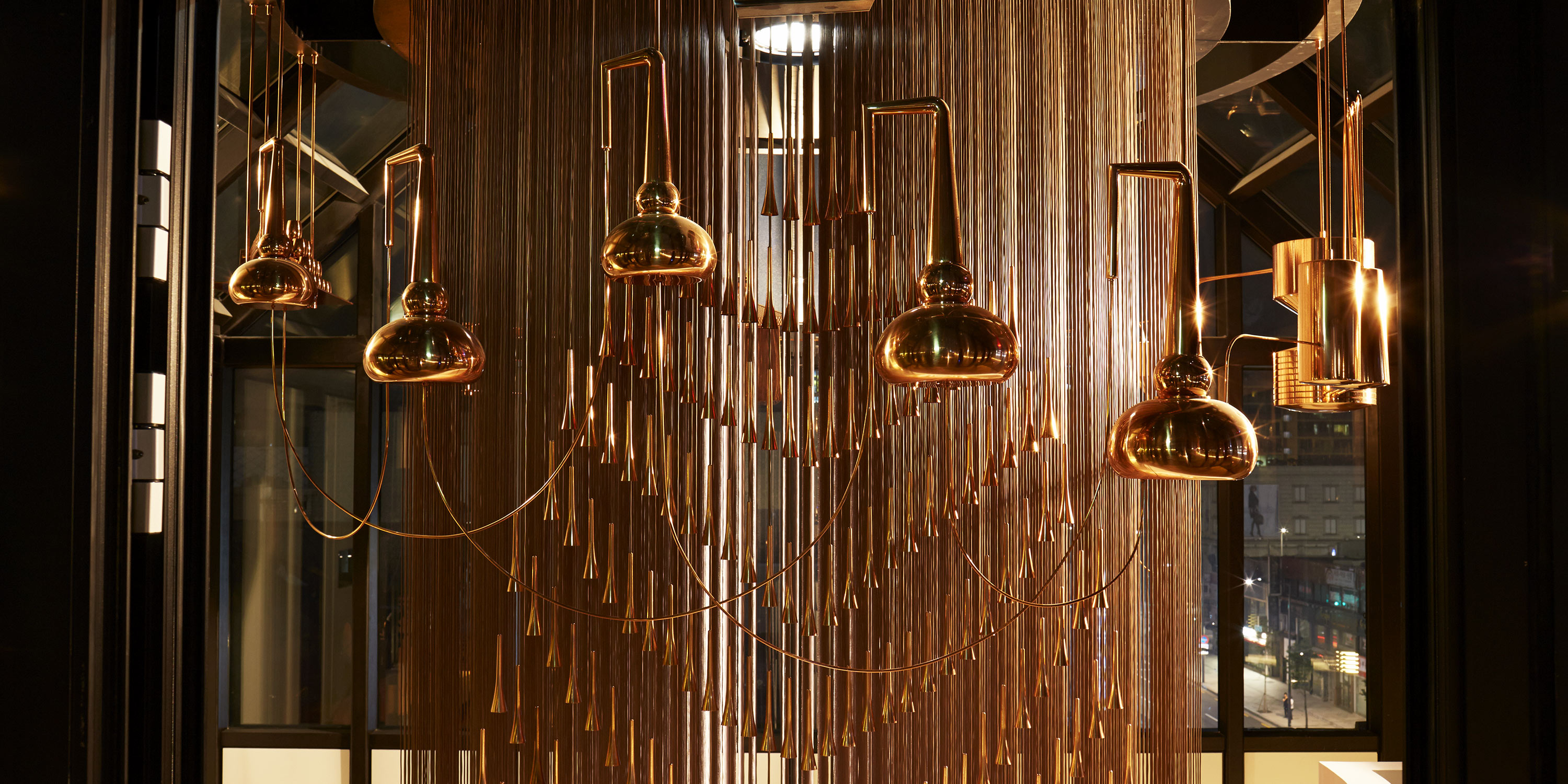 The final step along the journey was the third-floor bar, which accommodated a snug, a dining area and a whisky tumbler ceiling installation as an entranceway.
