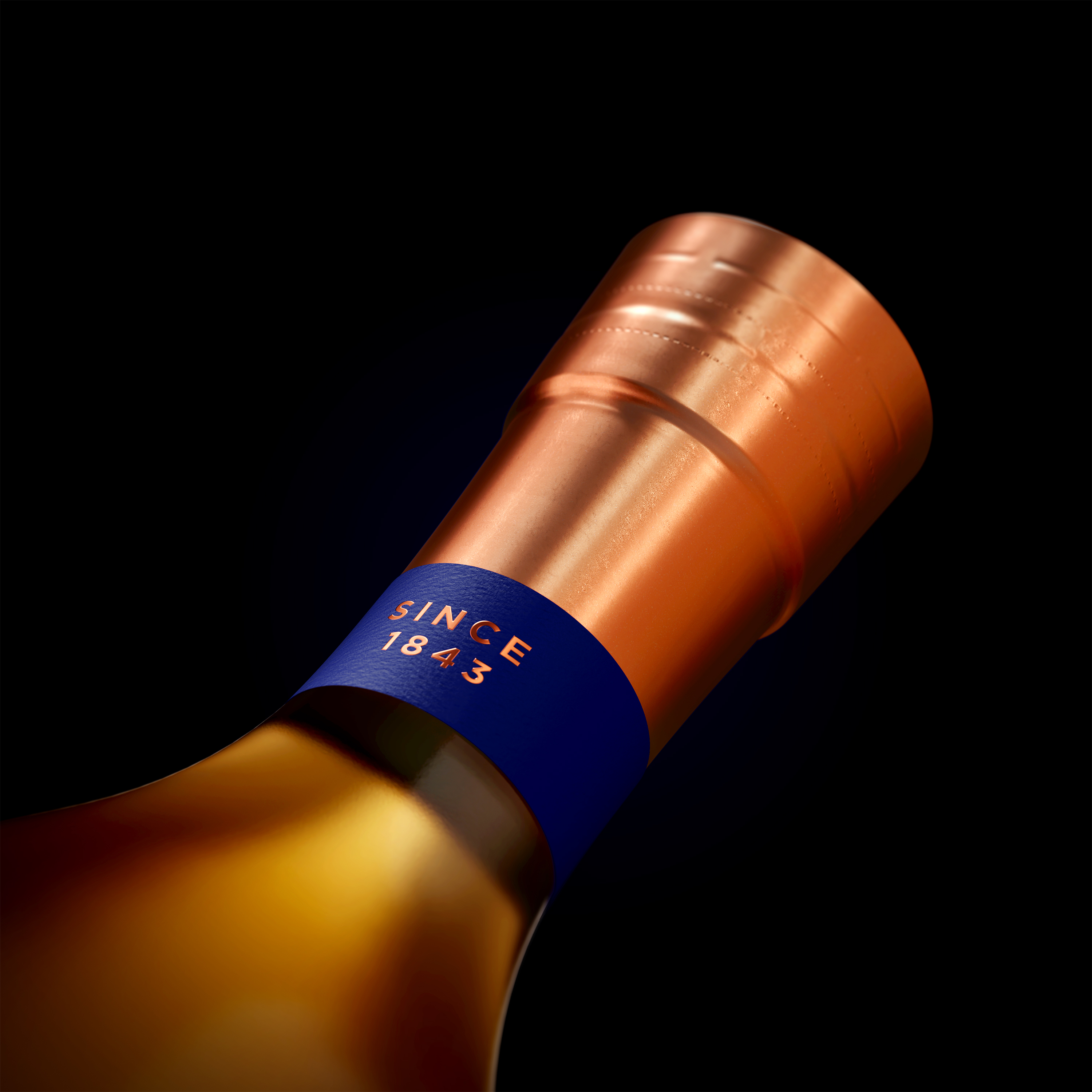 Our ambition was to find a colour that complemented Glenmorangie’s new technicolour, ‘delicious and wonderful’ world. Importantly, any colour we chose would have to pair beautifully with a vibrant orange and the rich copper finishes. ‘Infinity Blue’ is a bold and luxurious departure from old whisky codes; a confident counterbalance to the reinvigorated brand colour and a clear differentiator within the luxury whisky category.