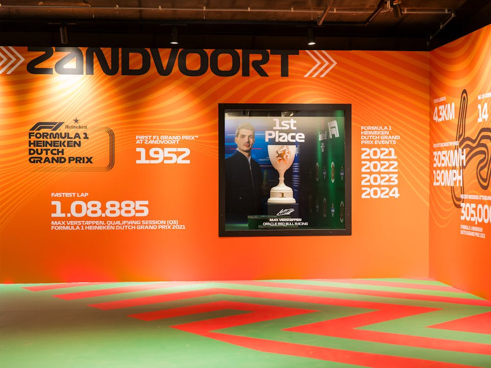 The second transformation took place in the main F1 room. Graphic posters featured key Grand Prix race titles from around the world, while another area was dedicated to the famous “Orange Wall” of the Dutch Grand Prix and paid tribute to Multiple F1 World Champion Max Verstappen’s first-place finish at the 2023 Zandvoort F1 Heineken Dutch Grand Prix.