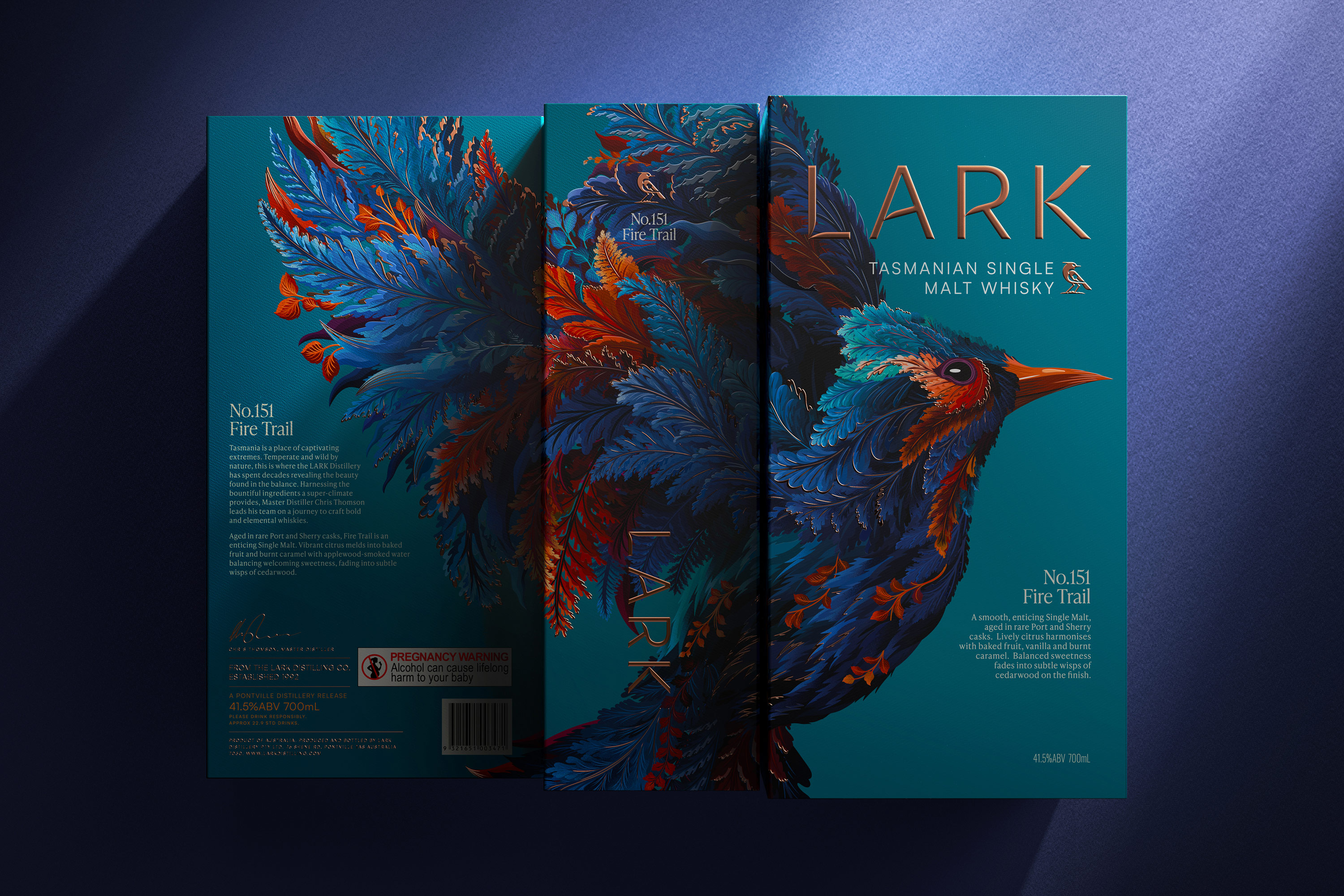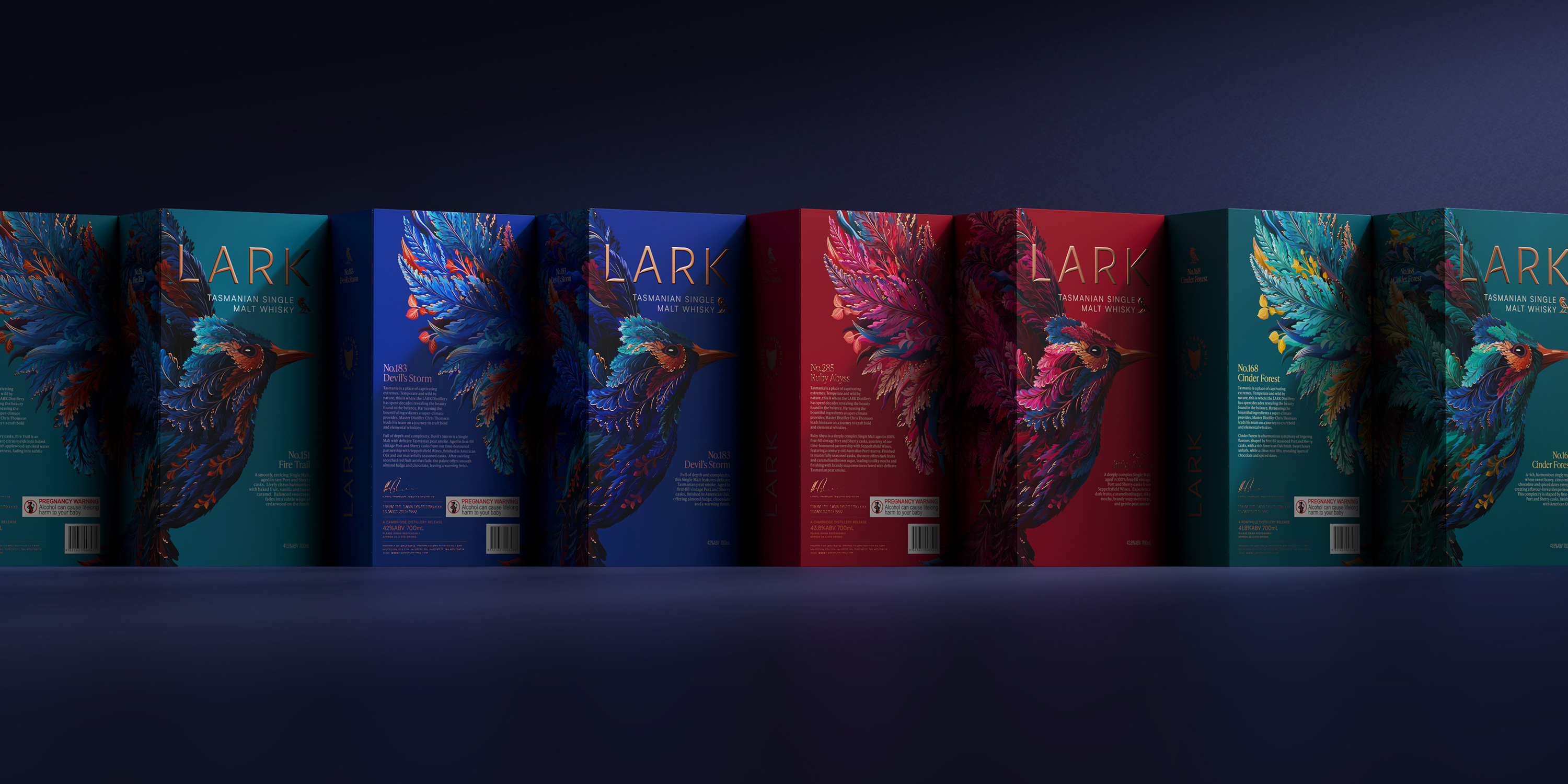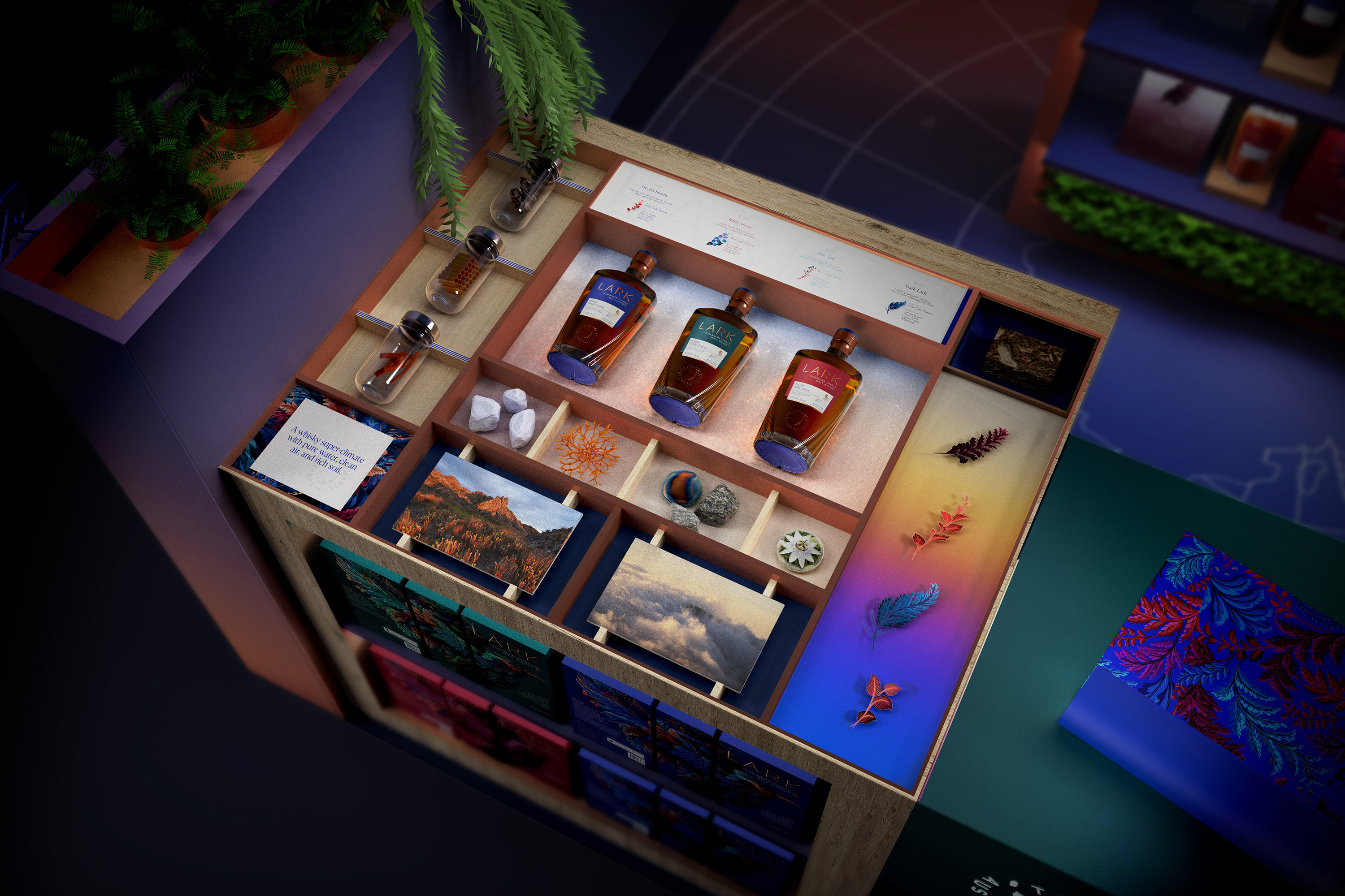 LARK wanted a total re-stage of their brand, presenting themselves (and Tasmania) as the epicentre of luxury New World Whisky. We saw an opportunity to break free from Scottish tradition and embrace the mystery of this whisky-making super-climate.