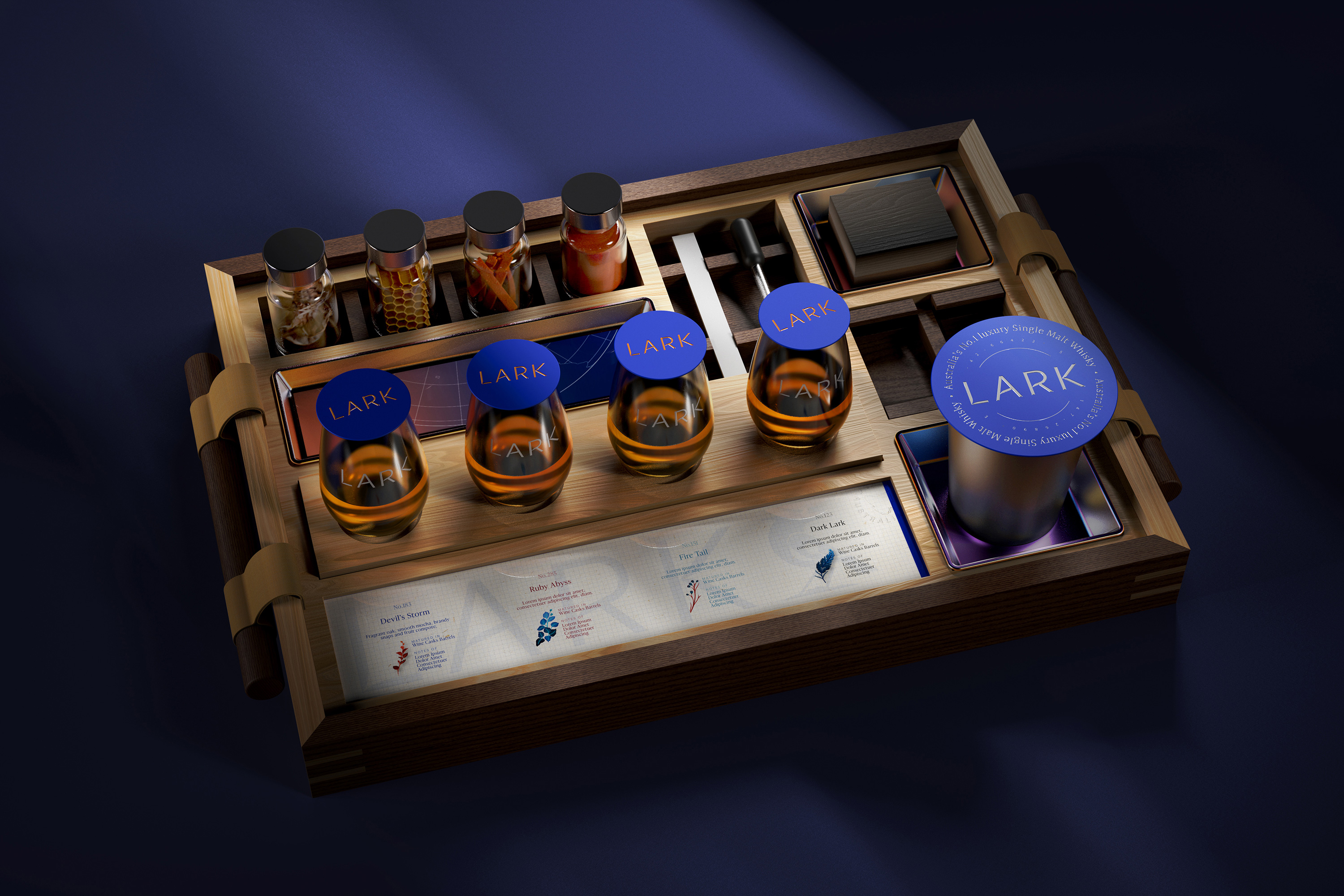 But although their credentials were growing year by year, the brand’s presence was still relatively regional. Our task was to reposition LARK as a globally desired whisky – premiumising their identity so they could compete in prestige and ultra-premium whisky tiers.