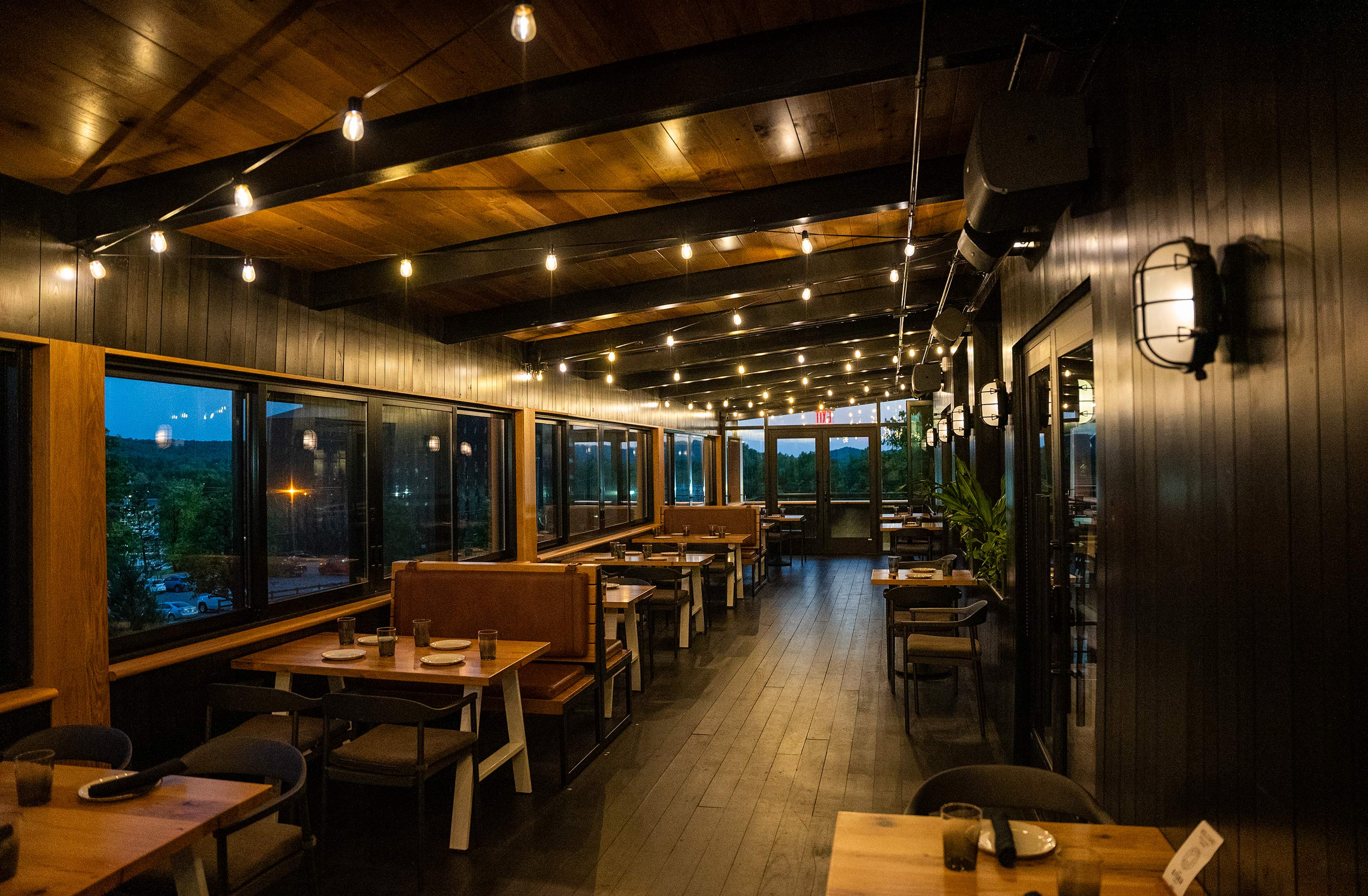 The Kitchen Table boasts one of the world's most exclusive bourbon collections, paired with a high-end food offer that is already making waves in Kentucky culinary culture. The main space features the hero bourbon and cocktail bar with double-height vaulted ceiling, an open kitchen complete with pizza oven, and two verandas - one covered with formal seating and one open with views to Bernheim Forest and beyond.