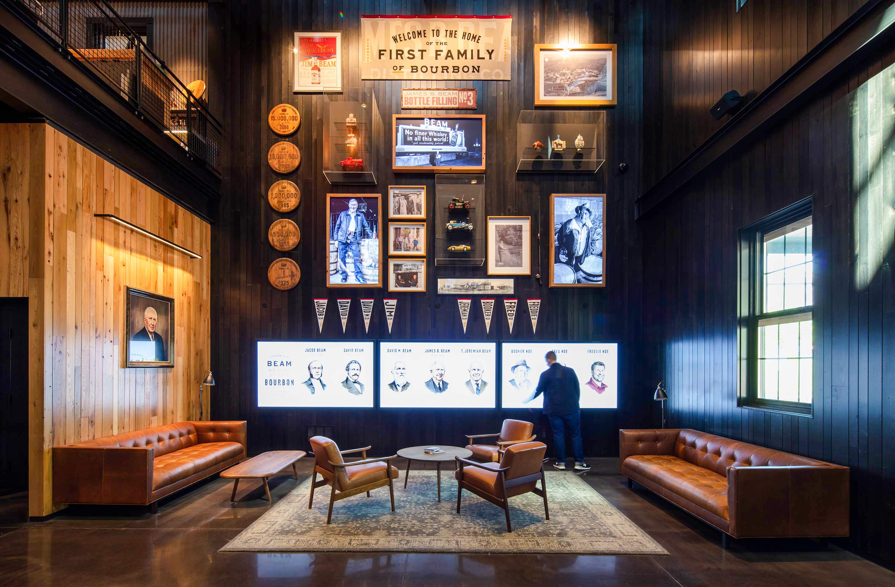 What was once an ageing wooden warehouse is now an open-plan multimedia exhibition space telling the incredible story of Beam bourbon, from still to barrel to bottle. The new interior was rebuilt using reclaimed rackhouse timber from across the campus.