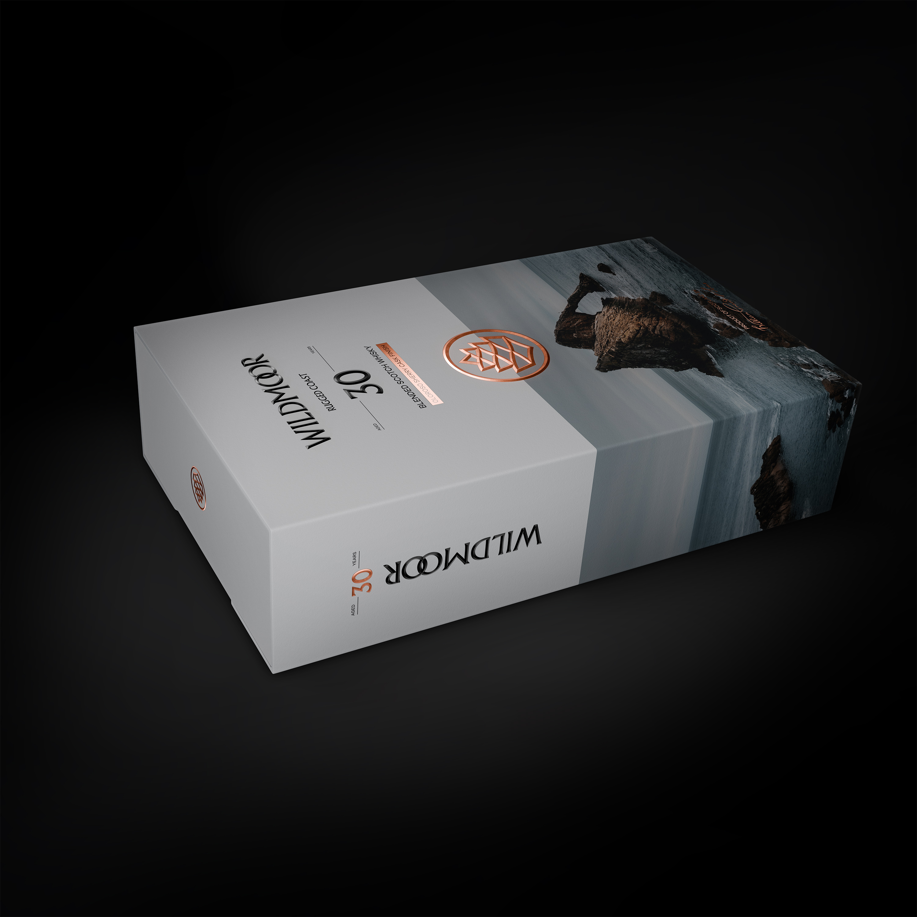 The Wildmoor wordmark has a chiselled-from-stone aesthetic that gives it an enduring, timeless quality and is paired with a secondary icon, the Scots pine cone. The pine cone is formed from ‘W’ and ‘M’ shapes that also suggest mountains and valleys.